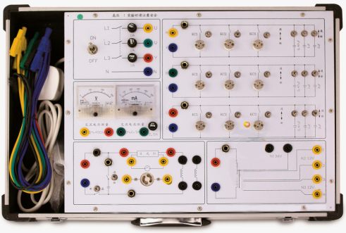 電工技術(shù)實(shí)驗(yàn)箱主要是進(jìn)行電工學(xué)及電路原理中的強(qiáng)電部分實(shí)驗(yàn),如單相交流電路、三相電路、日光燈電路實(shí)驗(yàn)。本實(shí)驗(yàn)箱由模塊單元和元件庫相結(jié)合的板面構(gòu)成,全部采用歐洲標(biāo)準(zhǔn)的安全插座和安全實(shí)驗(yàn)導(dǎo)線,連線方便,接觸可靠,而且壽命長、效率高,有效預(yù)防觸電隱患。實(shí)驗(yàn)面板上印有元件符號(hào)及主要參數(shù)便于學(xué)生識(shí)別。實(shí)驗(yàn)箱結(jié)構(gòu)緊湊實(shí)用直觀,安全可靠,能有效培養(yǎng)學(xué)生的動(dòng)手能力,維修方便、簡捷。可滿足各類高、中等院校及職業(yè)技術(shù)類院校開設(shè)的電工典型實(shí)驗(yàn)。