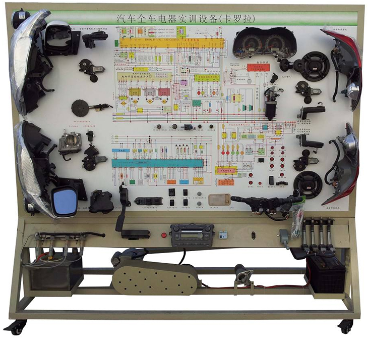 汽車電氣設(shè)備實(shí)訓(xùn)室。汽車電器設(shè)備實(shí)訓(xùn)室包含有汽車燈光系統(tǒng)、車載網(wǎng)絡(luò)系統(tǒng)、全車電器系統(tǒng)、汽車啟動(dòng)系統(tǒng)、汽車空調(diào)系統(tǒng)、全車線路試驗(yàn)臺(tái)、等實(shí)訓(xùn)教學(xué)設(shè)備。該實(shí)訓(xùn)室可以承擔(dān)《汽車構(gòu)造》、《汽車電器設(shè)備》、《汽車電控系統(tǒng)》、《汽車檢測(cè)與診斷》等課程的實(shí)踐教學(xué)任務(wù)。可以用于研究、分析全車電器系統(tǒng)、燈光系統(tǒng)、儀表系統(tǒng)等電器設(shè)備的電路及功能。利用這些系統(tǒng)進(jìn)行實(shí)踐教學(xué),使學(xué)生熟悉汽車電器的結(jié)構(gòu)和工作原理,掌握各個(gè)系統(tǒng)的基本組成電路,掌握主要電路的檢測(cè)方法和系統(tǒng)的故障特征,從而具有一定的檢測(cè)和調(diào)校能力。