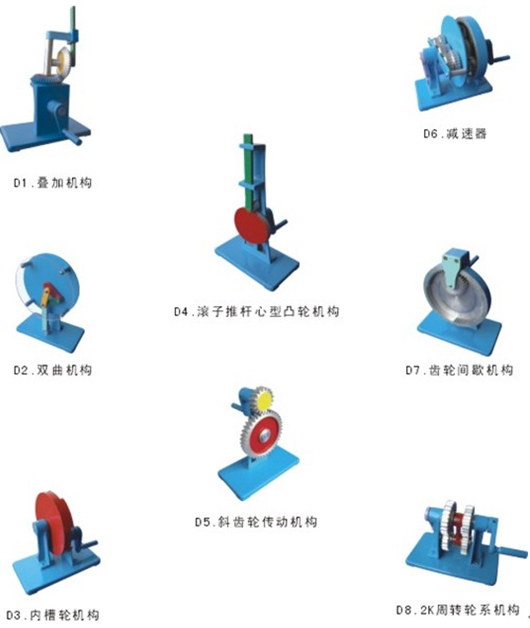2.機械運動簡圖的測繪及分析實驗模型系列產(chǎn)品分為JCF-A型(測繪及分析實驗模型基礎型)、JCF-B型(測繪及分析實驗模型基礎型)、JCF-C型(創(chuàng)新型測繪及分析實驗模型)和JCF-D型測繪及分析實驗模型(綜選型),每大類型中精選配置典型的機構模型。