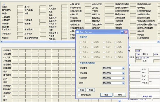 軟件可實現(xiàn)對內(nèi)機的控制,,可以對1-64臺內(nèi)機的狀態(tài)進行設定。