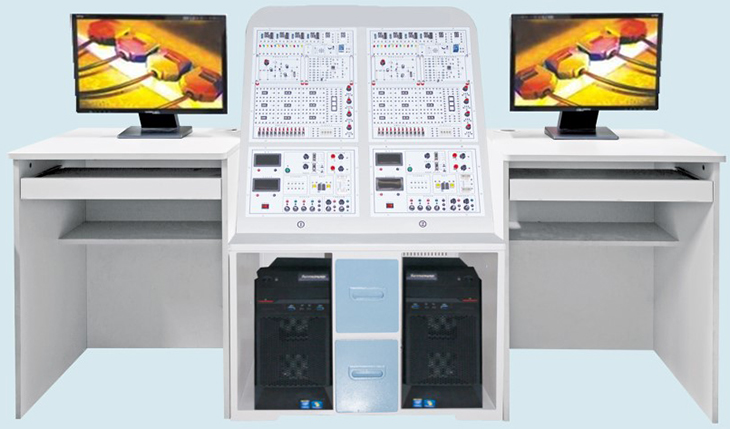 雙工位同步教學(xué)平臺(tái):尺寸:800×600×1200mm 材質(zhì):ABS 厚度5毫米,平臺(tái)后部采用透明有機(jī)玻璃;平臺(tái)下端兩側(cè)擺放電腦主機(jī),主機(jī)中間另有兩個(gè)抽屜存放實(shí)驗(yàn)器材,平臺(tái)上部擺放2個(gè)工位的數(shù)/模電同步互動(dòng)教學(xué)系統(tǒng)硬件模塊。 |