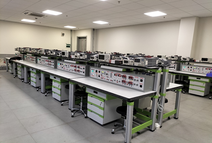 電路數(shù)電模電實(shí)驗(yàn)平臺(tái)、模擬電路實(shí)驗(yàn)實(shí)訓(xùn)室設(shè)備作為基礎(chǔ)實(shí)驗(yàn)室,可承擔(dān)電子系、通信系和自動(dòng)化系相關(guān)專業(yè)的《模擬電路》、《高頻電路》、《電子測量》等課程的所有實(shí)驗(yàn)及仿真,以及電子和通信類專業(yè)綜合課程實(shí)訓(xùn)、畢業(yè)論文(設(shè)計(jì))等。電路數(shù)電模電實(shí)驗(yàn)平臺(tái)主要培養(yǎng)了學(xué)生的專業(yè)基礎(chǔ)知識(shí)素養(yǎng),提高了學(xué)生的實(shí)驗(yàn)?zāi)芰蛻?yīng)用能力,并為教師教學(xué)創(chuàng)新、本科生畢業(yè)設(shè)計(jì)等提供了有利條件。